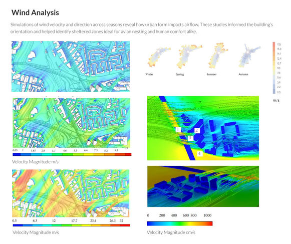 This project proposes a gym that redefines urban fitness by integrating environmental stewardship and multi-species cohabitation. Located on the former Peacock Gym site in London’s Newham Borough, the design responds to rigorous environmental and ecological analysis, highlighting the presence of red- and amber-listed bird species in the area. The gym incorporates tailored spaces for birds, separate from human activity but embedded within the architectural fabric, informed by wind simulations, microclimate studies, and noise mapping. Crucially, several design decisions were shaped by projections of future environmental conditions, ensuring long-term resilience for both human and avian users. The design not only supports community health and self-defence in a deprived borough, but also addresses the urgent need for resilient urban ecosystems. Through adaptable façade panels, green roofs, and species-specific nesting zones, the project exemplifies how environmental data—past, present, and predicted—can directly shape inclusive, bioclimatic architecture.